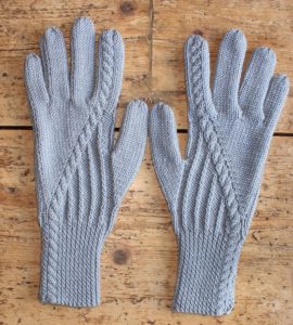 These elegant gloves feature a longer cuff and an interesting travelling cable. They are suitable for everyday wear as well as on smarter occasions.