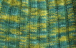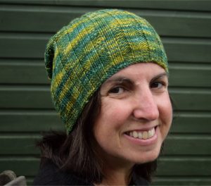 The yarn we’ve used to make this slouchy hat is absolutely fabulous; a blend of merino wool and silk, hand dyed by artisans in Uruguay and awarded a Fair Trade certificate; this is a luxurious hat! The beautiful random colour changes throughout the yarn give the finished fabric a superb variegated pattern.